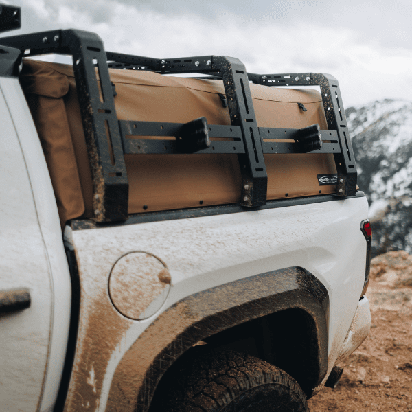 The Exo Truck Bed Rack™ is designed to expand what the Toyota Tacoma can carry without compromising everyday usability. Built specifically to pair with Softopper®, the Exo Truck Bed Rack™ adds vertical cargo capacity for rooftop tents, recovery gear, water, and accessories—while still allowing easy access to the truck bed below. It turns the Tacoma into a more capable platform for hauling, overlanding, and extended trips, without forcing a permanent or overly complex setup.
