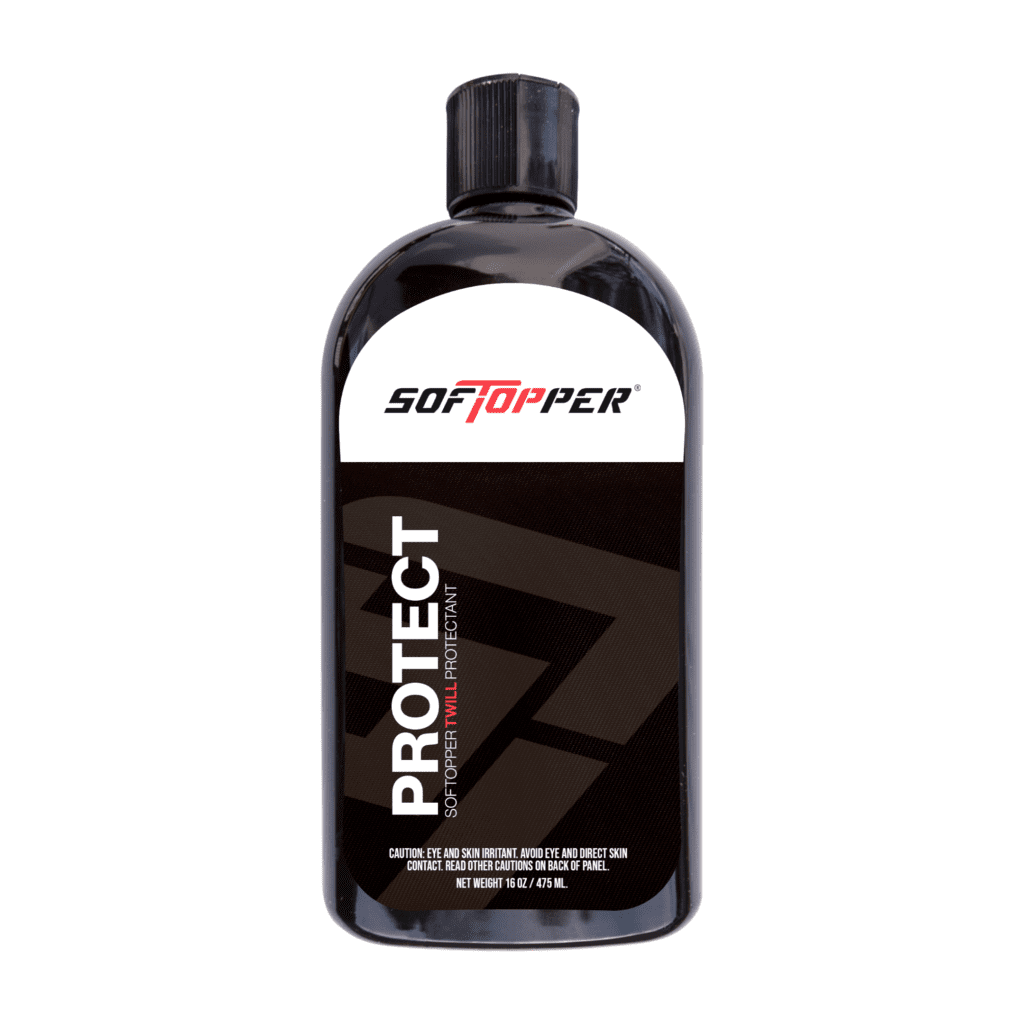 The Softopper Twill Protectant is specially designed to safeguard premium black Twill acrylic fabric. This unique formula helps protect the fabric from environmental damage, maintaining its appearance and durability over time.