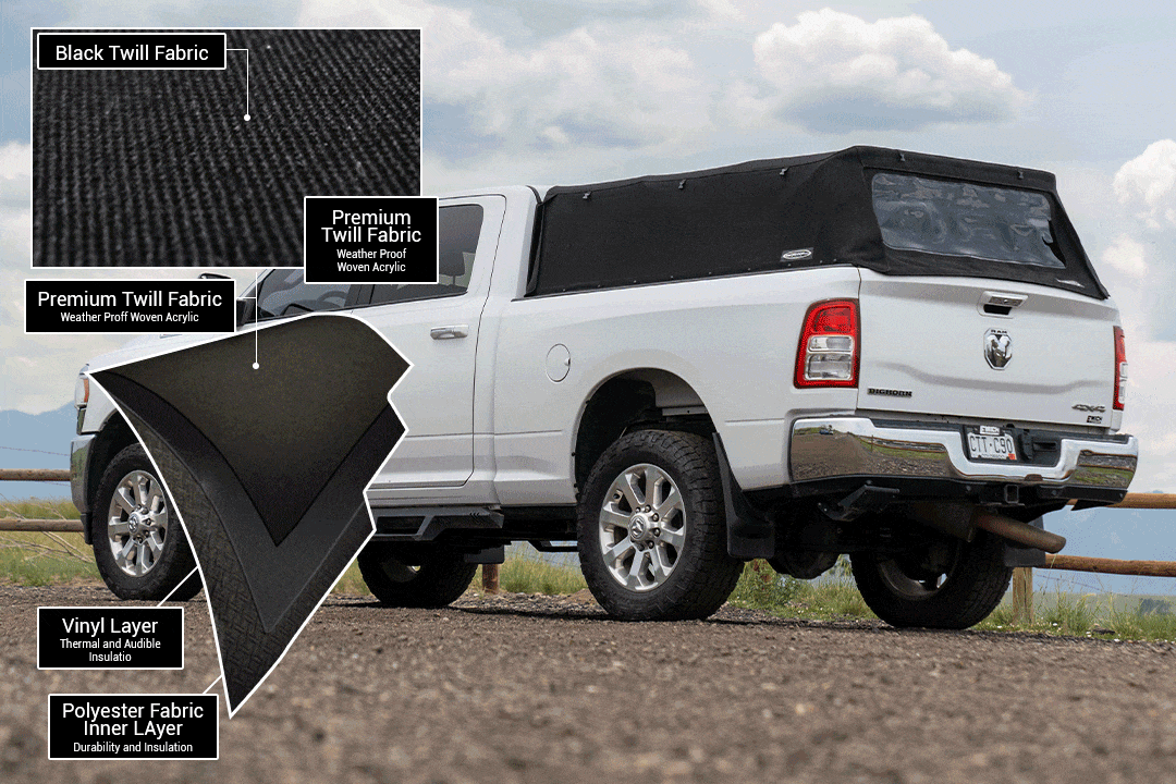 Our classic Softopper fabric has long been part of the ultimate in adaptable bed cover solutions. Now we have taken the original and best convertible upright top to a whole new level. The new 3-layer Premium Twill fabric is for that truck owner that expects the best. We have selected the best in OE-grade soft top material that has been time tested by leading Wrangler and Bronco top manufacturer, Bestop.